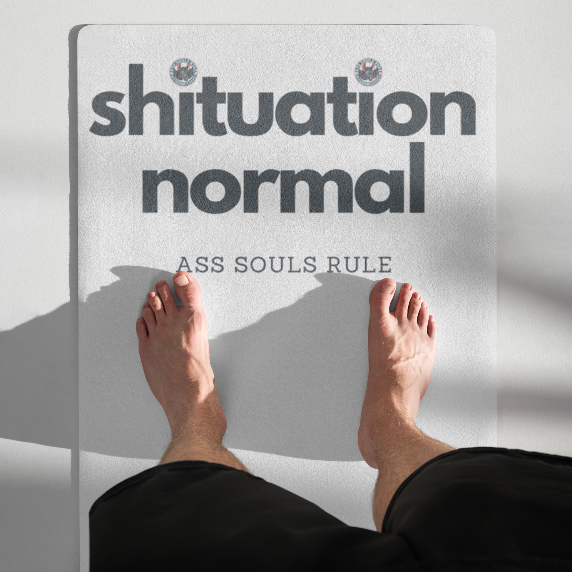 Whether you’re exercising, stretching, or meditating, it’s worth having a Shituation Normal yoga mat that brings you joy as you sit with your shit and matches your letting-shit-go ASR style. It’s easy to carry and provides both stability and comfort with anti-slip rubber on the bottom and soft microsuede on top.