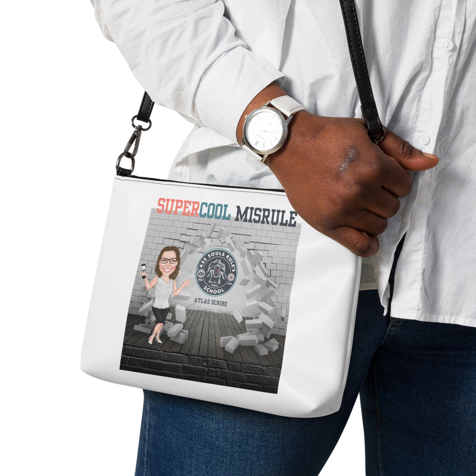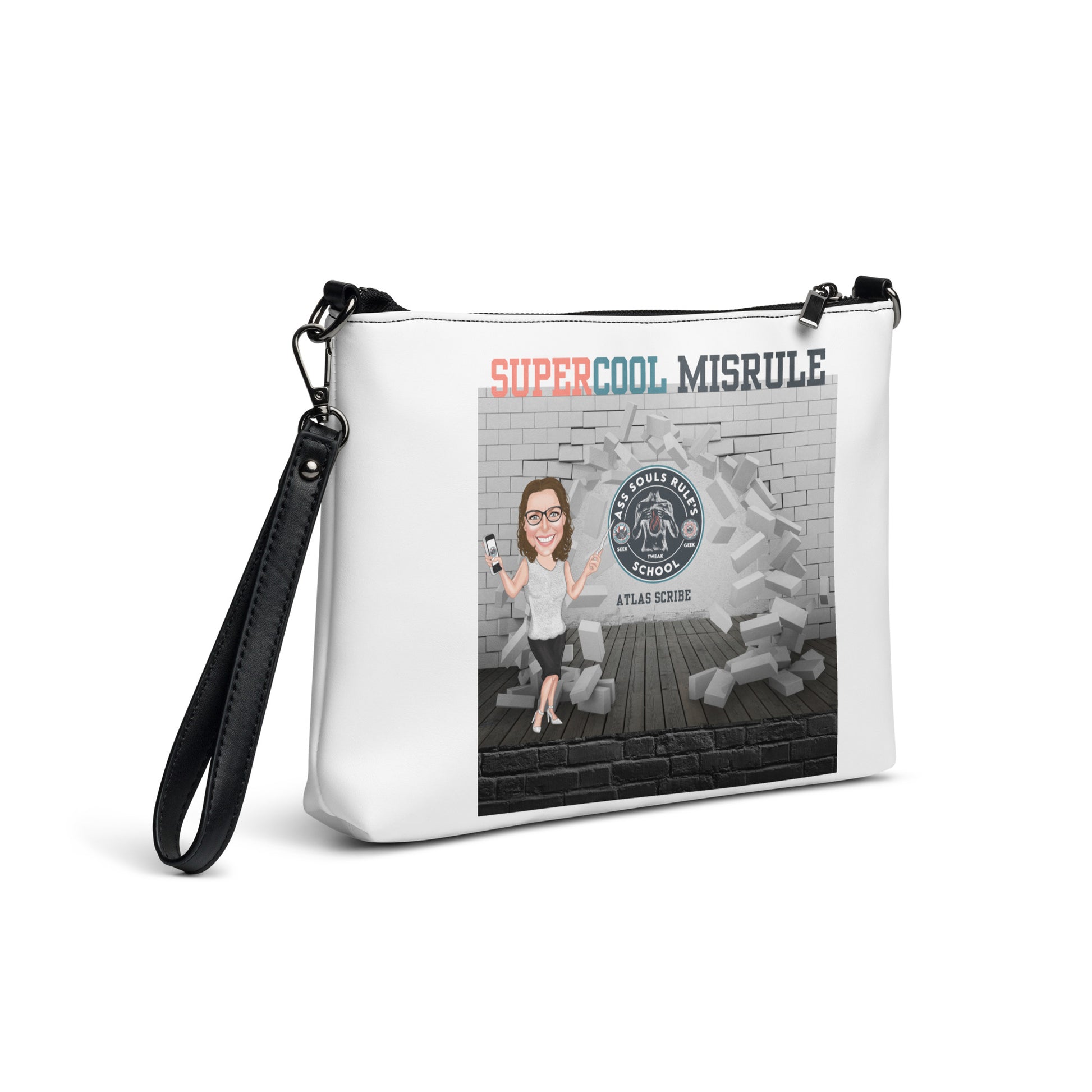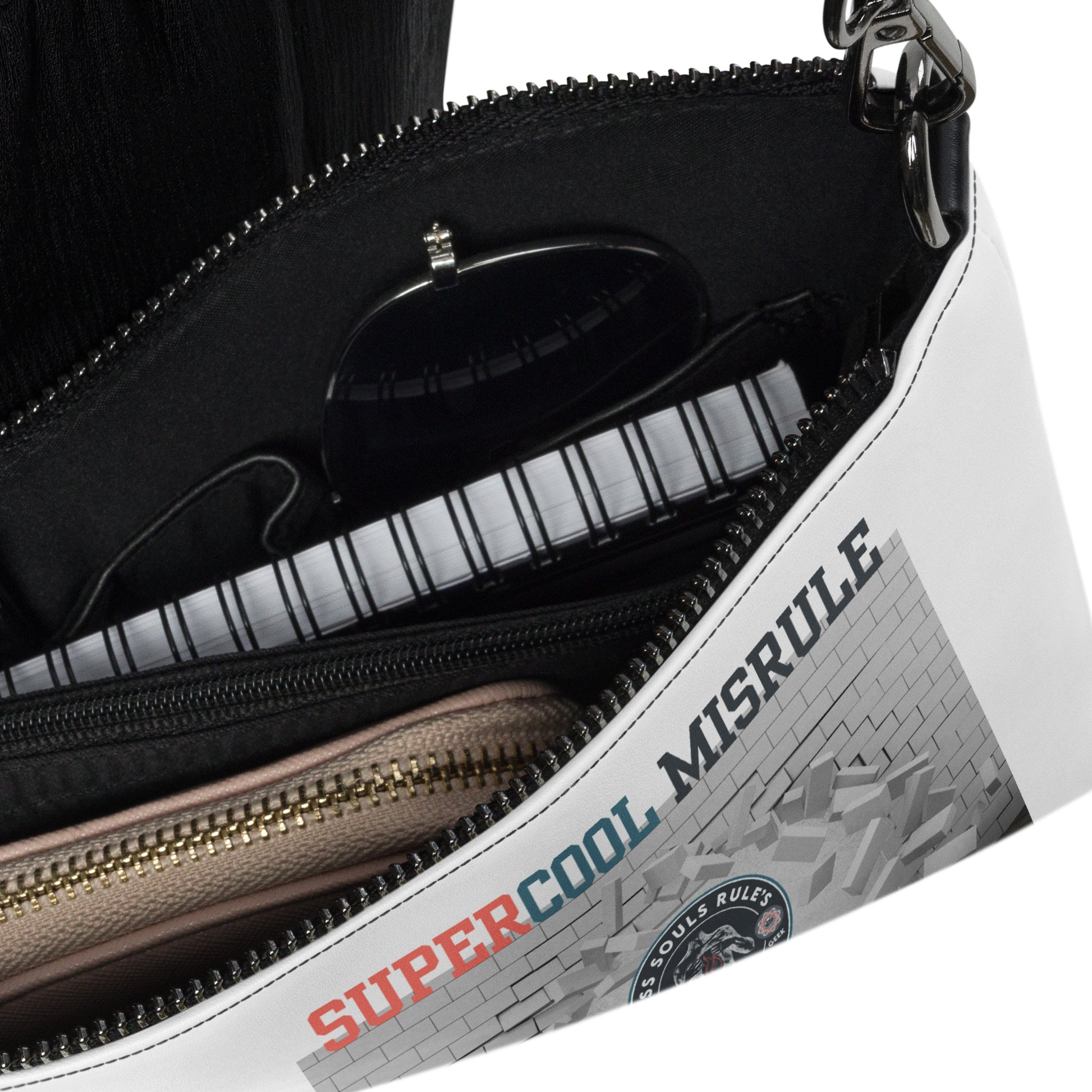 Keep your Ass Souls Rule's style on point and your hands free with our versatile crossbody SuperCool MisRule bag. It’s made of premium faux leather and features dark gray hardware. Thanks to the zip-top closure and multiple inside pockets, you can keep your essentials secure and organized. Transform this crossbody bag with removable wrist and shoulder straps to style it for day-to-night looks.