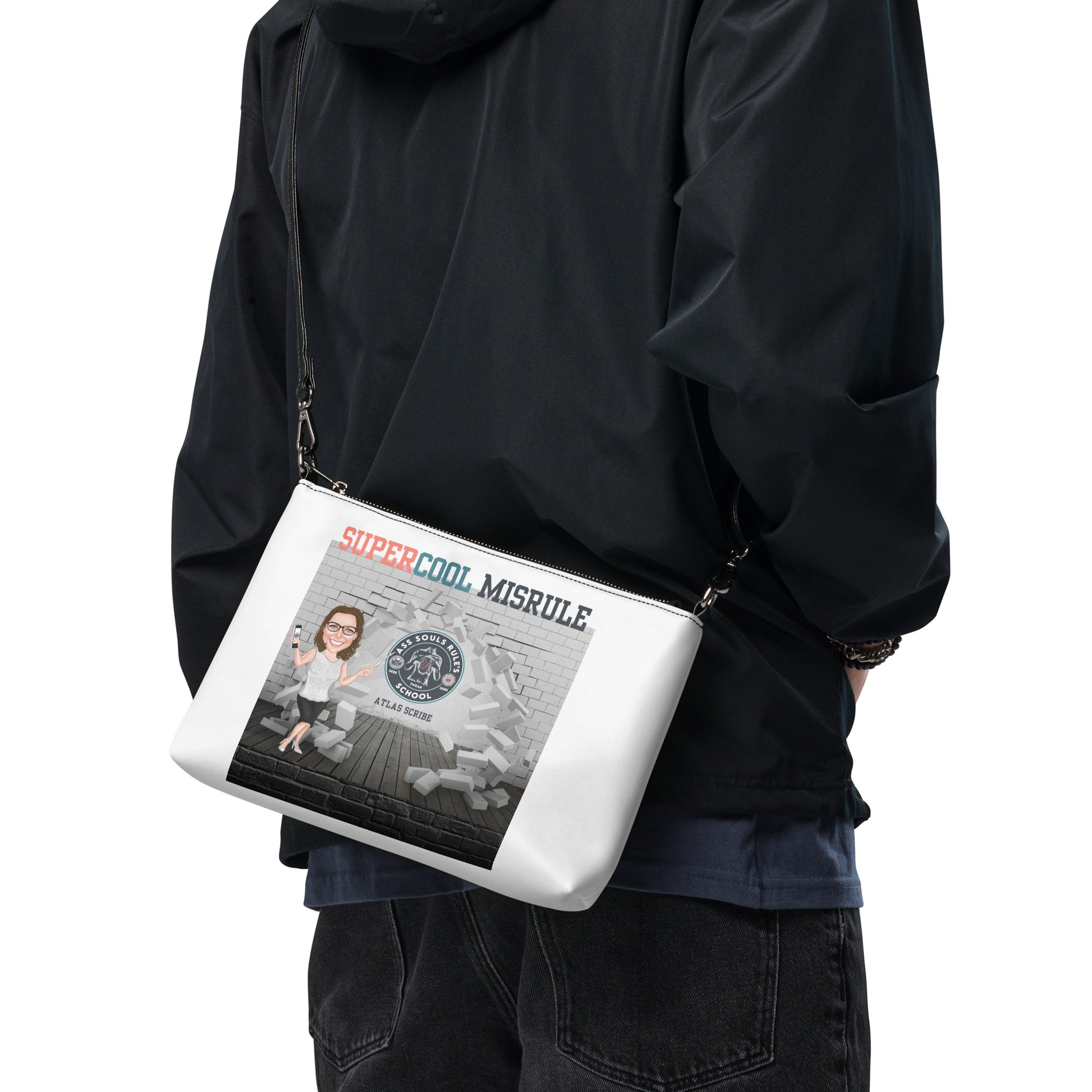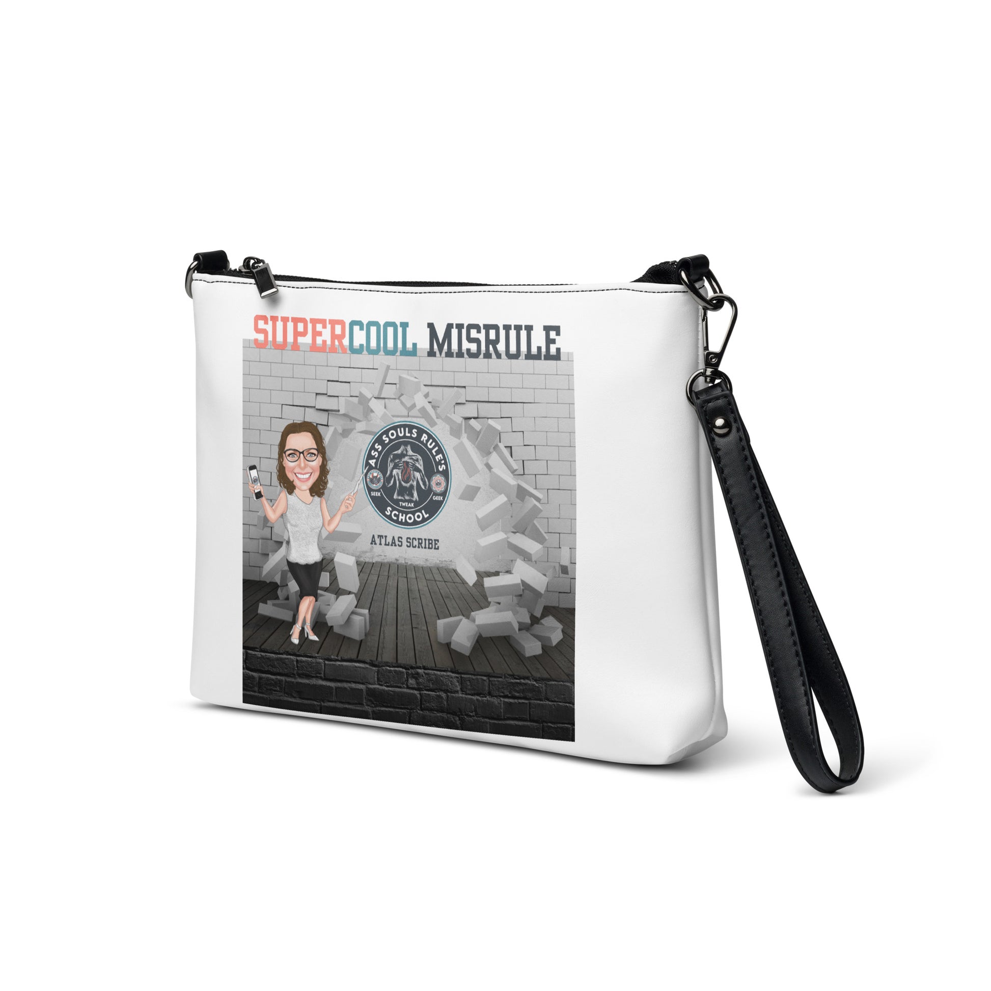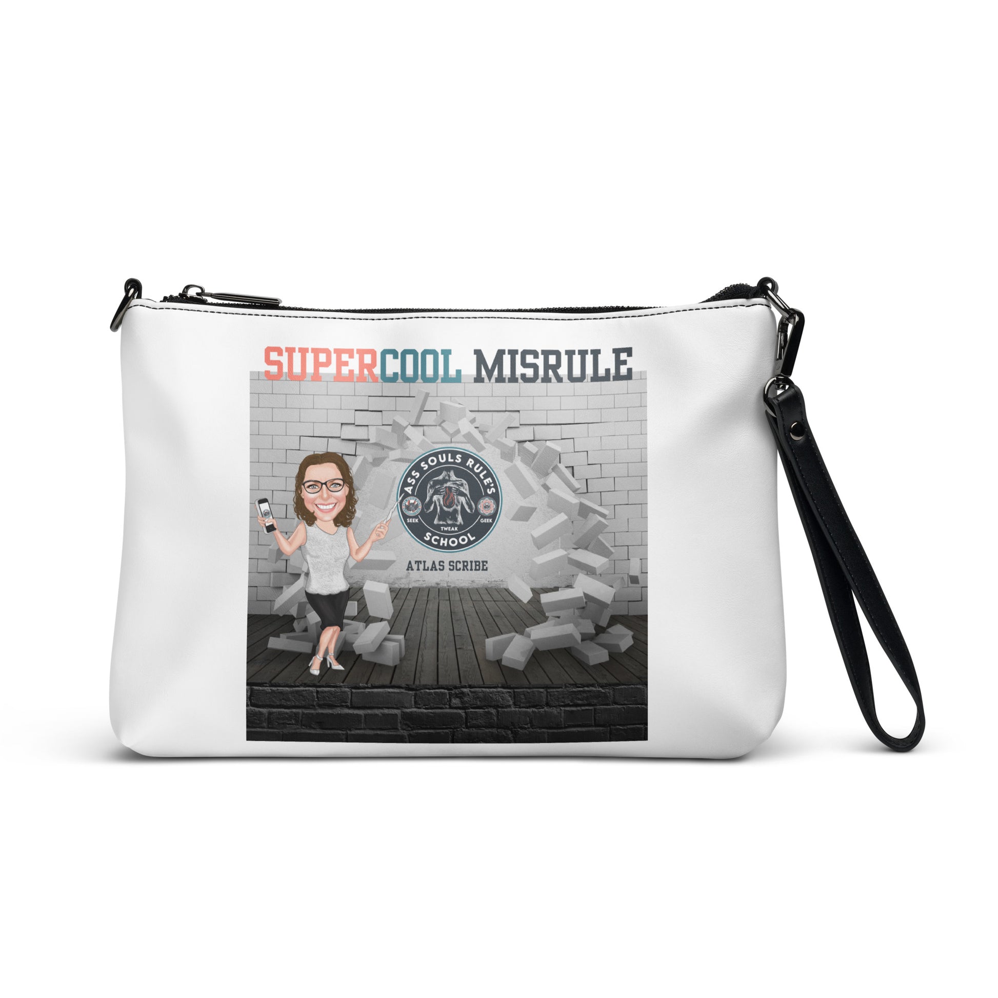 Keep your Ass Souls Rule's style on point and your hands free with our versatile crossbody SuperCool MisRule bag. It’s made of premium faux leather and features dark gray hardware. Thanks to the zip-top closure and multiple inside pockets, you can keep your essentials secure and organized. Transform this crossbody bag with removable wrist and shoulder straps to style it for day-to-night looks.