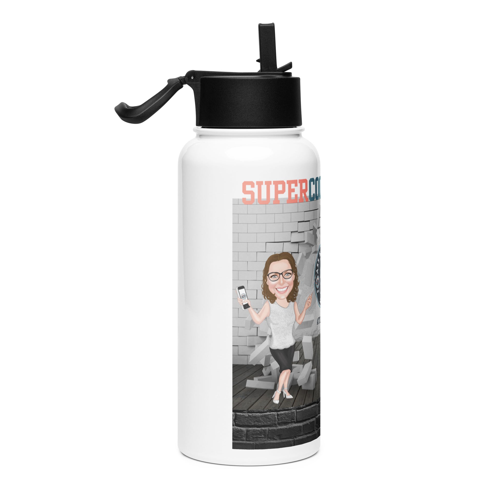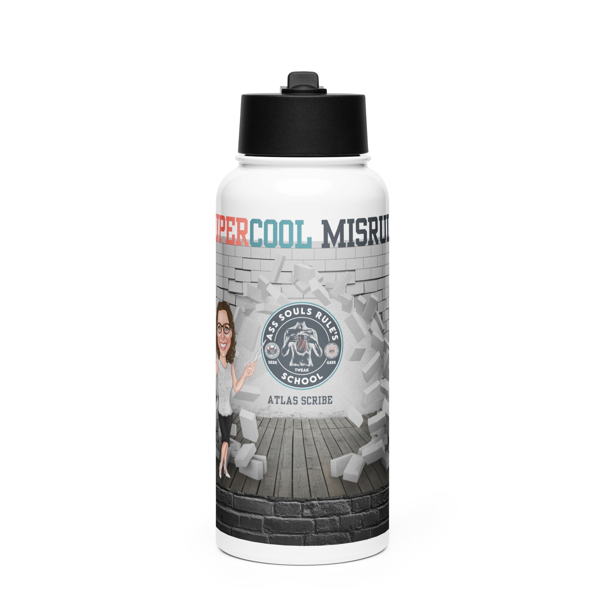 SuperCool MisRule stainless steel water bottle with a straw lid