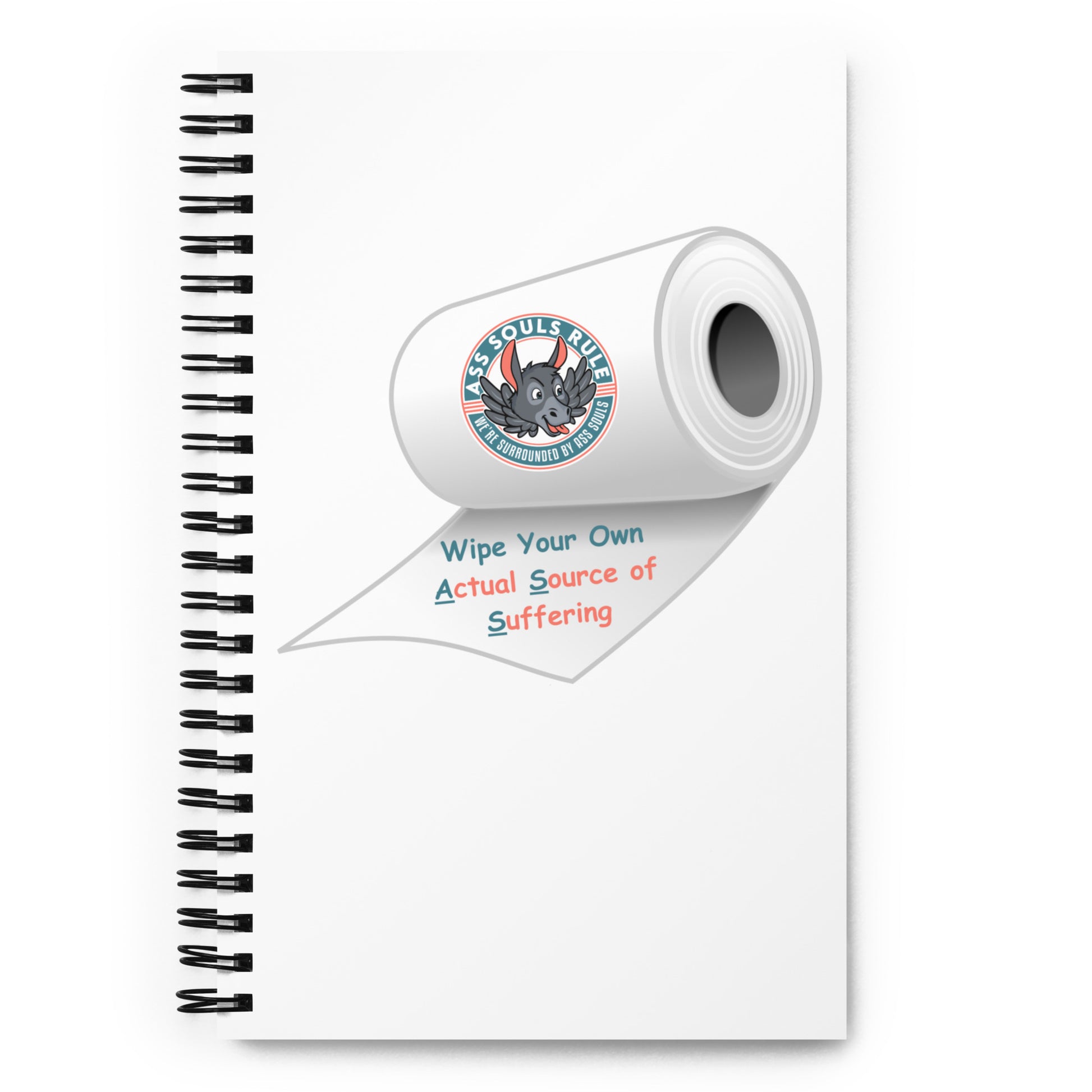 A good notebook can help you with motivation to take more notes or write down ideas on how to Wipe Your Own Actual Source of Suffering, or list future dreams. This custom wire-bound notebook will be a great daily companion whenever you need to put your thoughts down on paper or use it as toilet paper in a bind! (I wouldn't recommend that, though!)